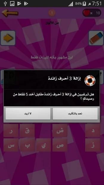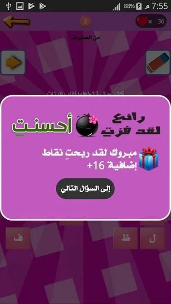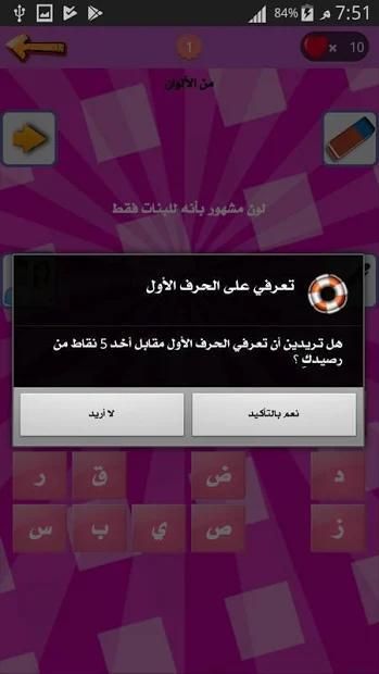 لعبة وصلة للبنات وبس خفيفة مسلية حلوه جميله رائعه و ممتعة جدا لكن تحتاج لبعض التركيز خصوصا في المستويات الصعبة التي من الممكن ان تصادفي فيها أسئلة صعبة عليك قد لن تجدي لها جواب وان حدث ذلك فلا تقلقي تستطيعين إستخدام وسائل المساعدة مقابل النقاط التي كسبتيها من حل الاسئلة السهلة الاولى وحتى ان كنت قد اكملت جميع النقاط فلا مشكلة تستطيعين كسب نقاط اخرى مجانا من خلال مشاركة التطبيق او تنفدي مهمات اخرى سهلة جدا جدا جدا