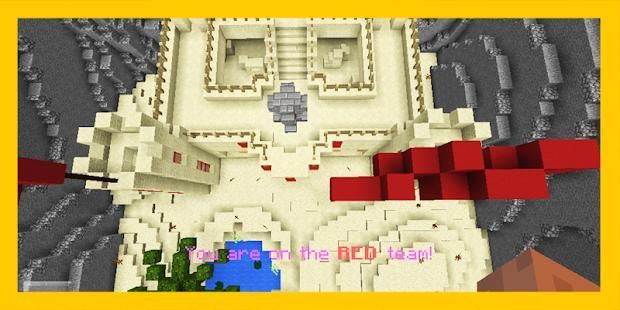 "Capture the Flag" ! Peta untuk MCPE ini untuk beberapa pemain, jadi jelas hubungi teman Anda. Di peta baru untuk Minecraft Anda dan teman Anda harus terbagi menjadi dua tim - merah dan biru. Setiap tim di peta ini untuk MCPE akan mendapatkan basis dan bendera mereka sendiri. Tujuan utama di peta ini untuk Minecraft adalah untuk menangkap bendera tim pesaing dan untuk melakukan segala sesuatu yang mungkin untuk membela Anda. Segera setelah Anda mendapatkan bendera di peta ini untuk MCPE, guntinglah dengan gunting Anda. Download peta baru kami untuk Minecraft secara gratis, hubungi teman Anda dan bermainlah bersama mereka!