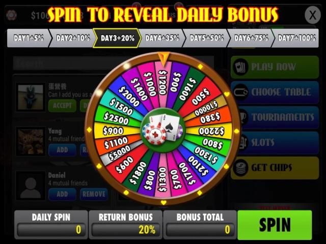 Masuk pada yang terbaik aplikasi gratis Texas Hold'em Poker dan menerima 25.000 GRATIS chip hanya untuk men-download! Menjaga kompetisi poker akan melawan teman dan pemain hidup lainnya secara GRATIS dengan chip harian murah hati bonus, hadiah, penghargaan, dan chip bonus besar setiap 4 jam.