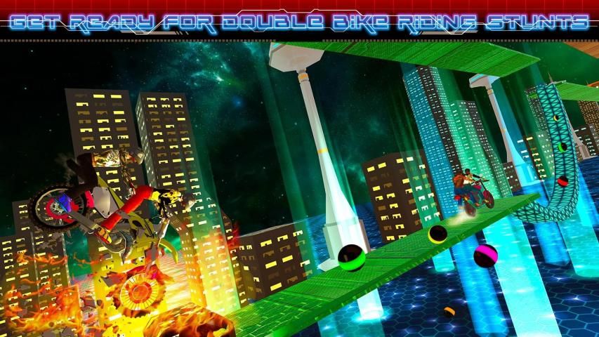 Tandem riders are a team of two and sharing the pleasure of cycling on the same bike is an awesome team-building experience. What you have to in the game is to take care of your partner riding behind you. Your reckless driving can put him in a trouble. Perform amazing and crazy stunts on your tandem bike and complete all the levels in a spectacular way. You have to cross tricky bridges over, obstacles and heights. You have never tried tandem cycle racing game with this level of two men bike riding suspensions and realistic bike control. Night fantasy environment is a unique place of bike riding game and this thing puts an extra flavor in the game.
