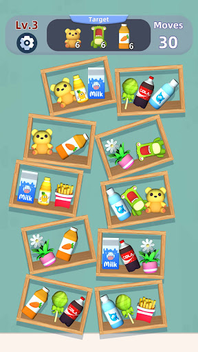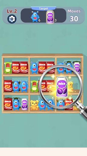 Seret barang di rak untuk membuat pertandingan triple dan menghilangkan jenis barang untuk menyelesaikan setiap level.