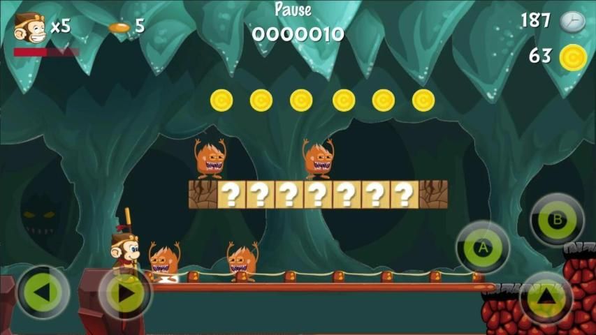 The monkey's princess was kidnapped by the demon and taken to the bottom castle. As a young leader of the monkey family, Kong had to take on the responsibility of saving the princess. It would travel through various adventure scenes such as forests, canyons, snow-capped mountains, glaciers and underground palaces. Find the princess and defeat the defensive monster to finally save the princess!