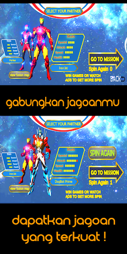 Fusion berbagai macam karakter yang ada untuk melengkapi koleksi superhero-mu.