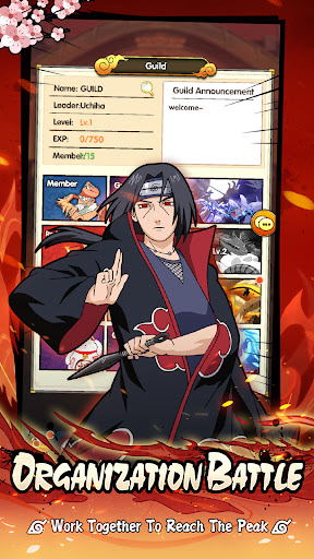 Bergabunglah dengan guild dan berpartisipasi dalam pertempuran guild untuk bersaing untuk sumber daya dan melindungi sekutu Anda.Hidupkan Nindō Anda untuk guild Anda dan kalahkan ninjas nakal!