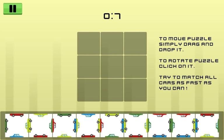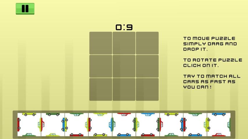 Anda harus mengatur 3x3 persegi dari 9 kotak kecil. Tujuannya adalah untuk mencocokkan warna dari semua mobil, tapi itu tidak begitu sederhana seperti yang terlihat. Apakah Anda cukup gigih untuk mengatasinya?