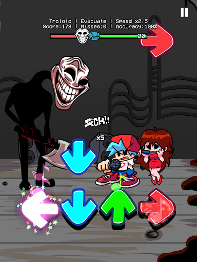 Jumat malam!Sungguh waktu yang tepat untuk mengunjungi kerabat!Jadi, GF memperkenalkan BF kepada pamannya, Tuan Trololo.Mereka mulai berbicara dengan musik funkin dalam pertempuran rap FNF.Itu waktu yang menyenangkan bersama.Namun, Trololo tiba-tiba dikendalikan oleh seorang misteri - trollge.Dia kemudian mulai menyerang ke GF dan BF.Apa yang harus Anda lakukan untuk membantu mereka?Situs Cobalah yang terbaik untuk mengetuk tombol panah ketika mereka cocok untuk mendapatkan skor tertinggi.Rasakan irama kulit fun!Menari dengan CG5!