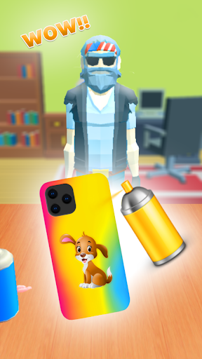 Semprotkan pewarna case telepon dengan warna -warna berkilau dan biarkan untuk mengeringkannya dengan blower di game pewarna ini.