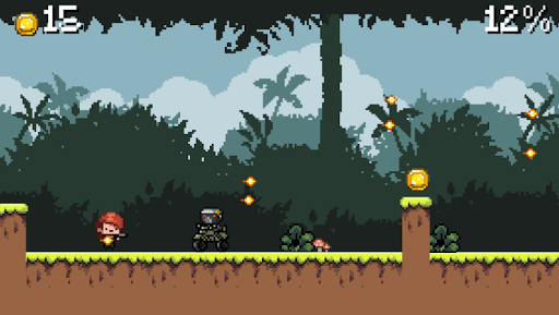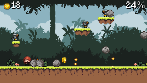 permainan Retro-Style Run & Shoot, dengan kontrol satu sentuhan yang mudah.Situs Anda perlu mengumpulkan koin dan menghindari rintangan dengan melompat dengan karakter Anda melalui 5 misi berbeda.