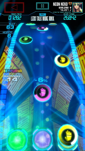 Antarmuka pengguna yang efisien yang membuat menu keluar dari jalan dan secara otomatis menata Pertempuran multiplayer online real-time terhadap pemain HP dan bahkan arcade permainan pemain - yang pertama untuk permainan musik lain! Melihat lagu apa yang menggambar kerumunan terbesar dan melompat tepat di alur dengan tekan jari Anda.