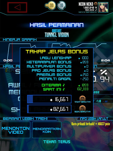 Seperti permainan arcade musik asli, banyak kesulitan pilihan untuk setiap lagu memungkinkan pemain dari semua tingkat keahlian untuk bermain dan bersaing. Pratinjau lagu gratis, dan alur untuk pilihan baru musik gratis setiap minggu. Menempel irama untuk mendapatkan poin, mendapatkan lencana, membuka lagu baru, dan memenangkan token untuk bermain gratis bahkan lebih. Ponsel dan permainan arcade menerima lagu update setiap 2 minggu atau kurang, memastikan Anda sedang bermain musik terbaru dan menjaga kompetisi segar! Ayo Lihat Mengapa Neon FM™ adalah permainan musik terbaik dekade!