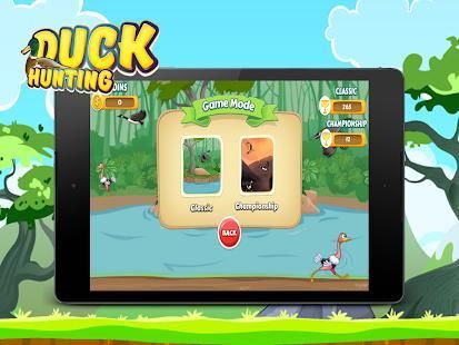 Mendapatkan kehidupan ekstra untuk tinggal di kejuaraan dengan menembak Burung unta dalam permainan untuk mencapai skor tinggi dalam permainan. Kesulitan permainan meningkat dengan meningkatnya tingkat dalam modus kejuaraan. Upgrade shot-gun untuk berburu cepat dan akurat dan mendominasi leaderboard dari Hunters bebek di kedua MODE CLASSIC dan CHAMPIONSHIP MODE.