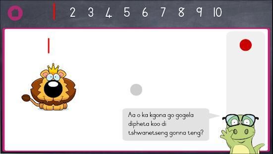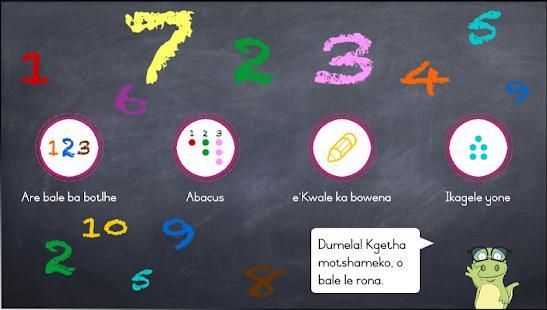 Tswana 123 is a Tswana educational app for young children that teaches numeracy using child-friendly counting beads and characters from the animal kingdom.