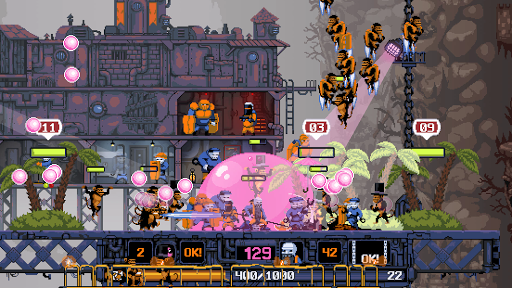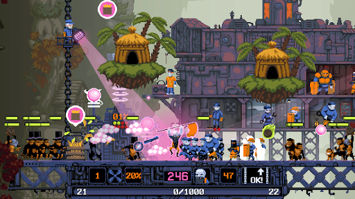 * Kumpulkan ayam dan hasilkan energi dengan menggunakan metode khusus, non-kekerasan untuk meningkatkan kemampuan kota dan membuka kunci. Kota memberi Anda asisten NPC dan anggota pasukan, dan kemampuan membiarkan Vladimir menurunkan lawan dengan cara yang semakin mencolok, seperti memanggil cacing merah muda untuk memperlambat musuh Anda kemudian menggunakan kunci pas raksasa untuk menangani pukulan yang menghancurkan.