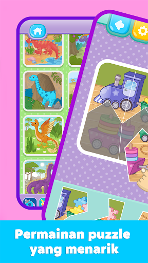 “Permainan puzzle untuk anak & balita” berisi berbagai permainan edukasi untuk anak yang akan membantu mereka menghabiskan waktu dengan bermain dan belajar secara menyenangkan. Permainan edukasi ini menawarkan berbagai puzzle dan mode permainan yang cocok untuk anak laki-laki dan perempuan berusia 2-6 tahun.