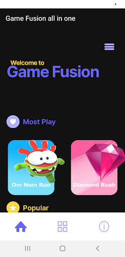 Game Fusion All-in-One adalah aplikasi yang dirancang untuk memberi pengguna platform terpusat untuk menemukan dan memainkan berbagai game online.Aplikasi ini menampilkan sistem klasifikasi game yang kuat yang memungkinkan pengguna untuk menelusuri dan mencari game berdasarkan kategori, seperti genre, popularitas, dan peringkat pengguna.