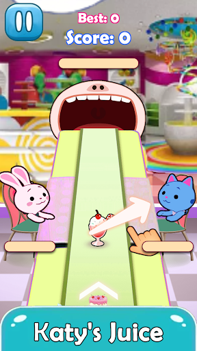 The Game is all about bunny and kitty challenges. Just move the milkshake and pancake on screen towards the bunny and kitty to get a score because these both have eating challenge. Now you can get score by serving food to these both challengers. Just watch out how much cakes they eat at a time.