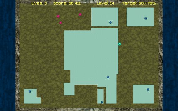 The player goes through the sea leaving the trace behind him. If the player or sea monsters cross the trace, the player dies and gets back to the start. The trace then is being filled with water again. If the player manages to reach the other part of the land, the trace becomes land. All closed sea regions without sea monsters become land.