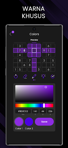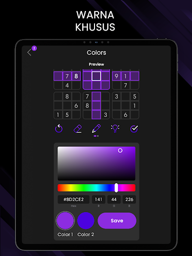 - Grid 9x9 dengan desain mewah/modern dan kustomisasi warna yang lengkap