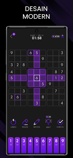 - Otomatis menghapus catatan dari semua kolom, baris dan blok setelah nomor ditempatkan dan juga undo tanpa batas