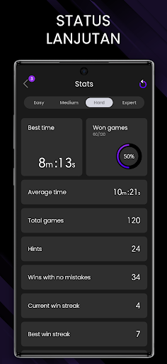 - Statistik dan analitik lanjutan untuk melacak kemajuan Anda untuk setiap tingkat kesulitan Sudoku logic puzzles