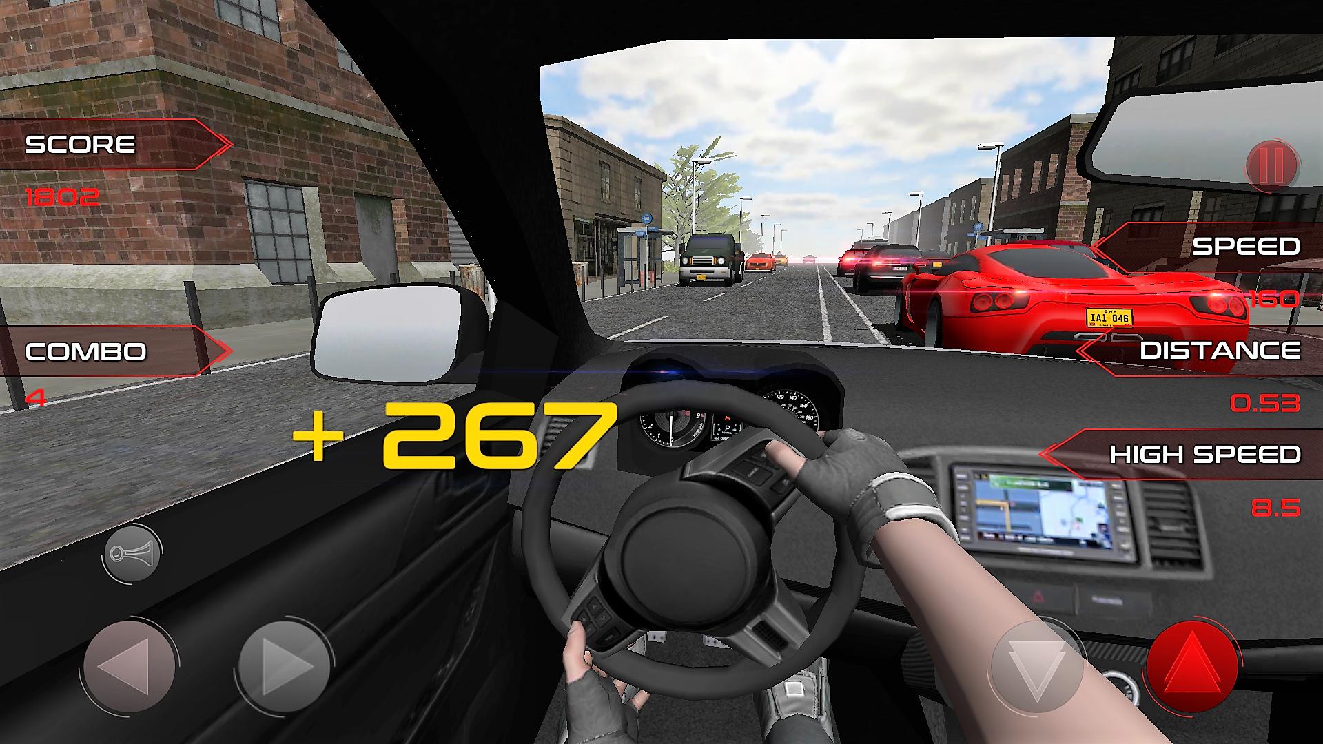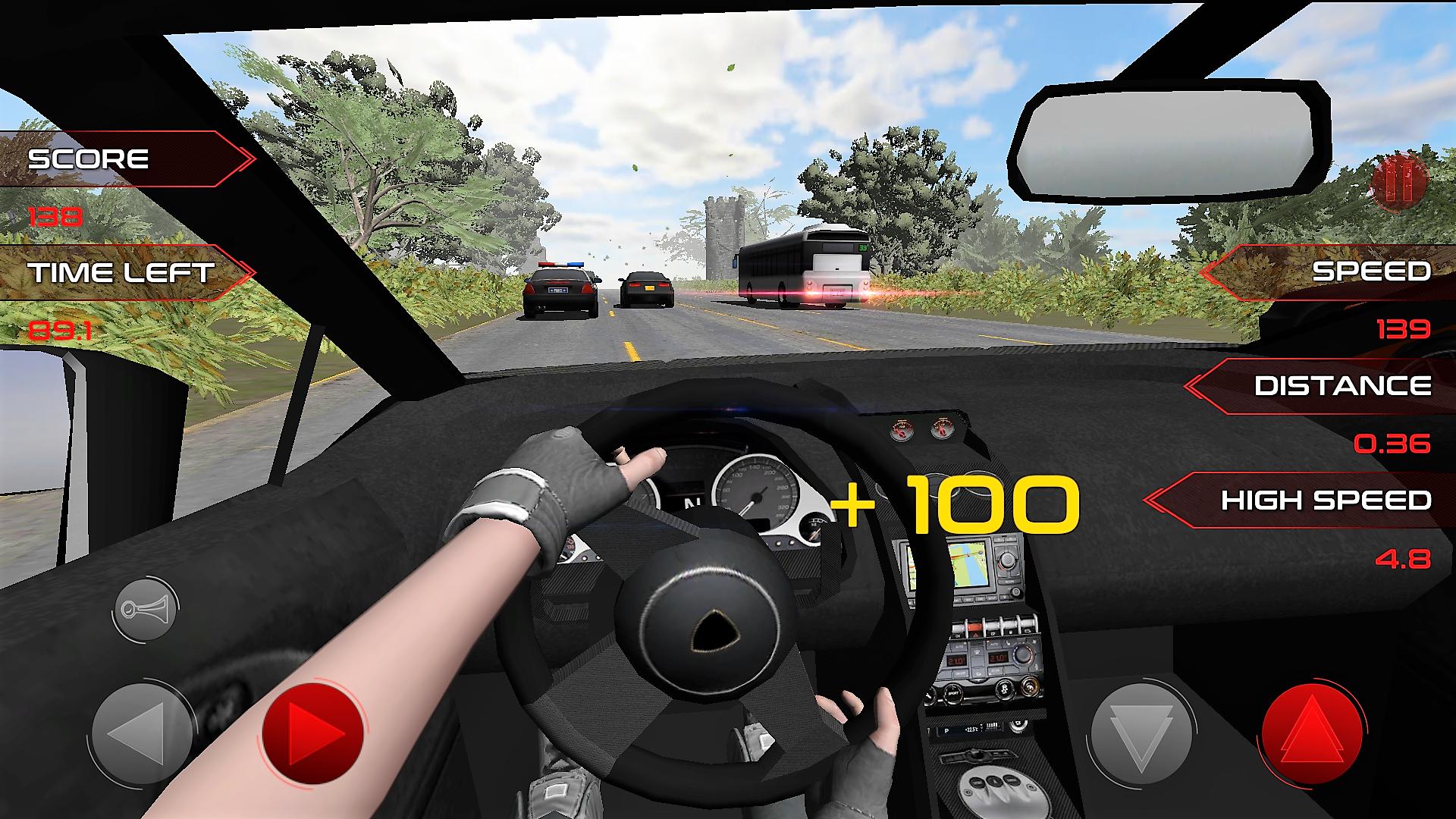 - When driving over 100 kmh, overtake cars closely to get bonus scores