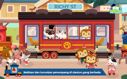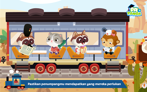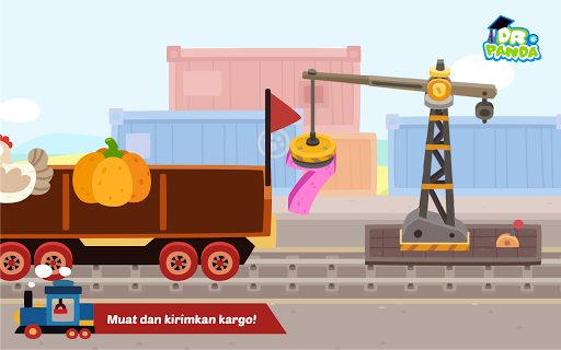 Kereta api Dr. Panda telah tiba di stasiun! Kenakan topi kondekturmu dan bawalah penumpang dalam perjalanan yang menyenangkan dan penuh kejutan!