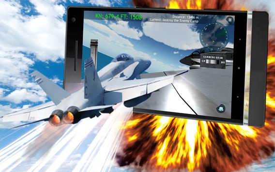 Take control, climb into the realistic 3D cockpits and fly the most famous military aircraft's, faithfully reproduced. Air strikes against the navy gunship battle at its best in the open sea. With your super detailed F/A-18 Super Hornet you will involved in ground attack missions and dangerous navy landing operations. War is in the air, fight for the glory and lead your fighter jets to take on the enemies in this epic war game.