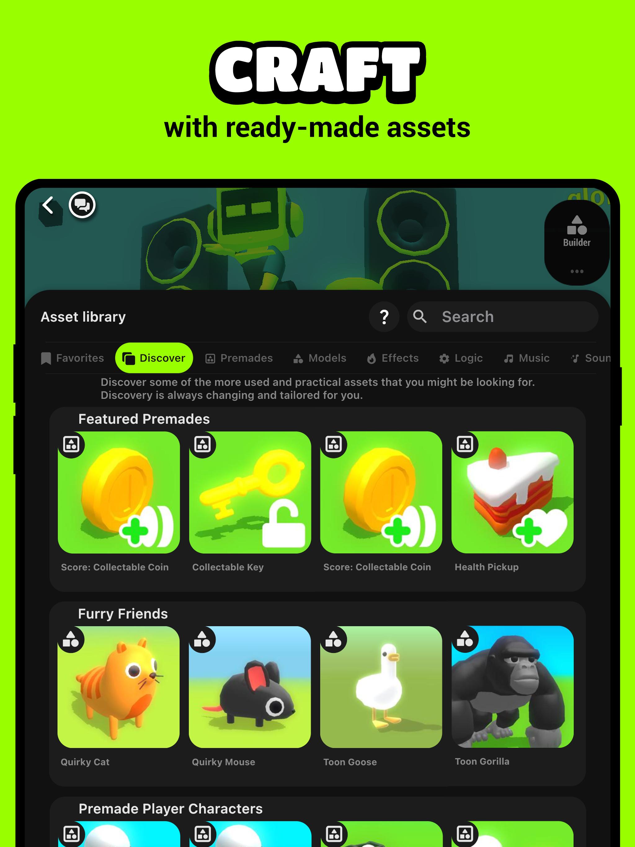 ● CRAFT with a growing library of 3D assets, models, music & add-ons