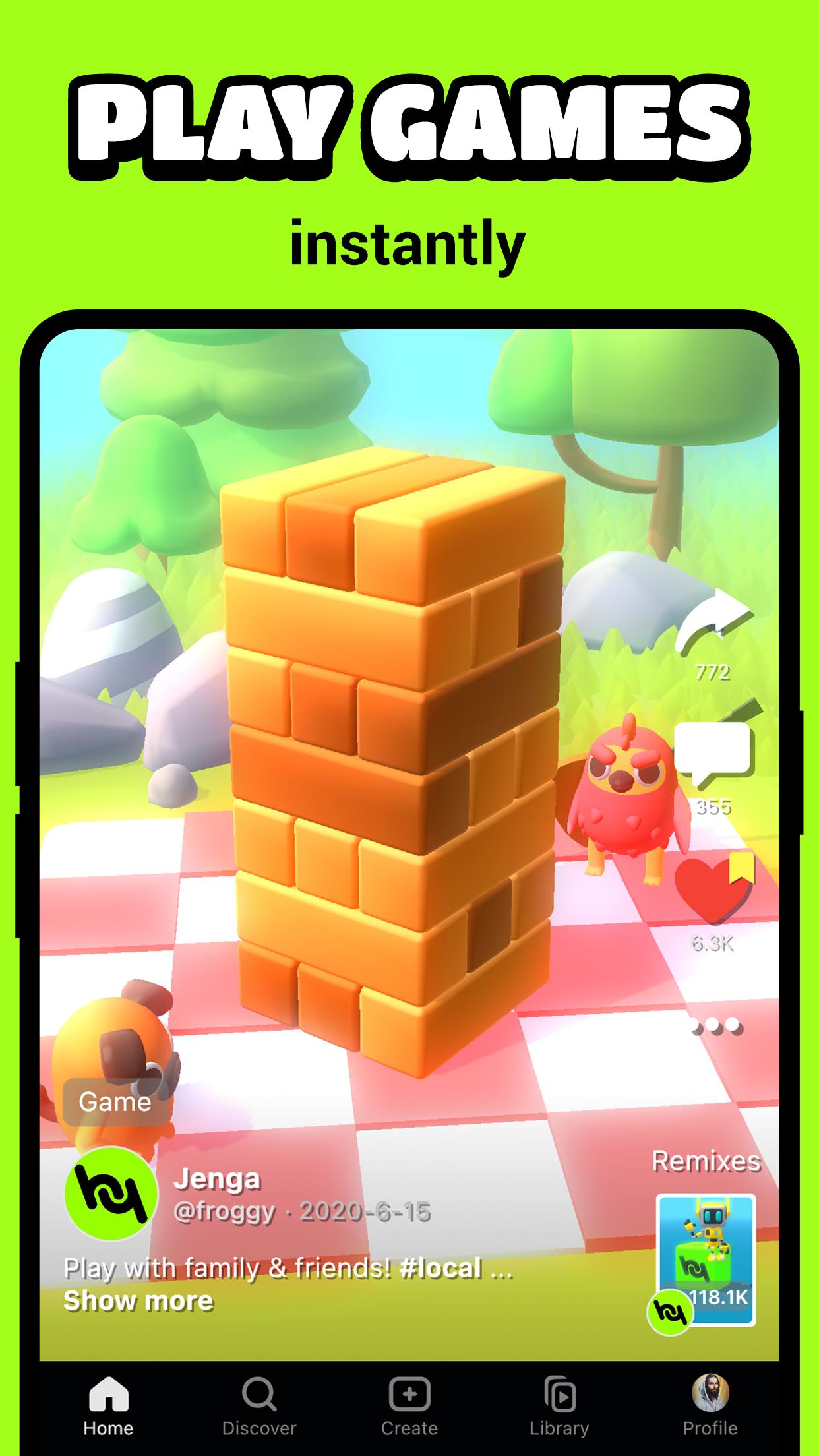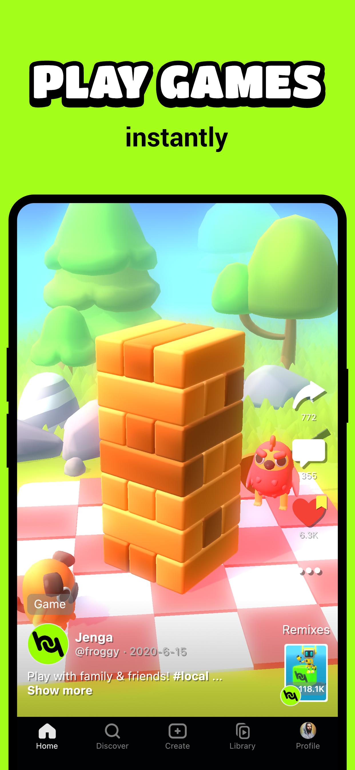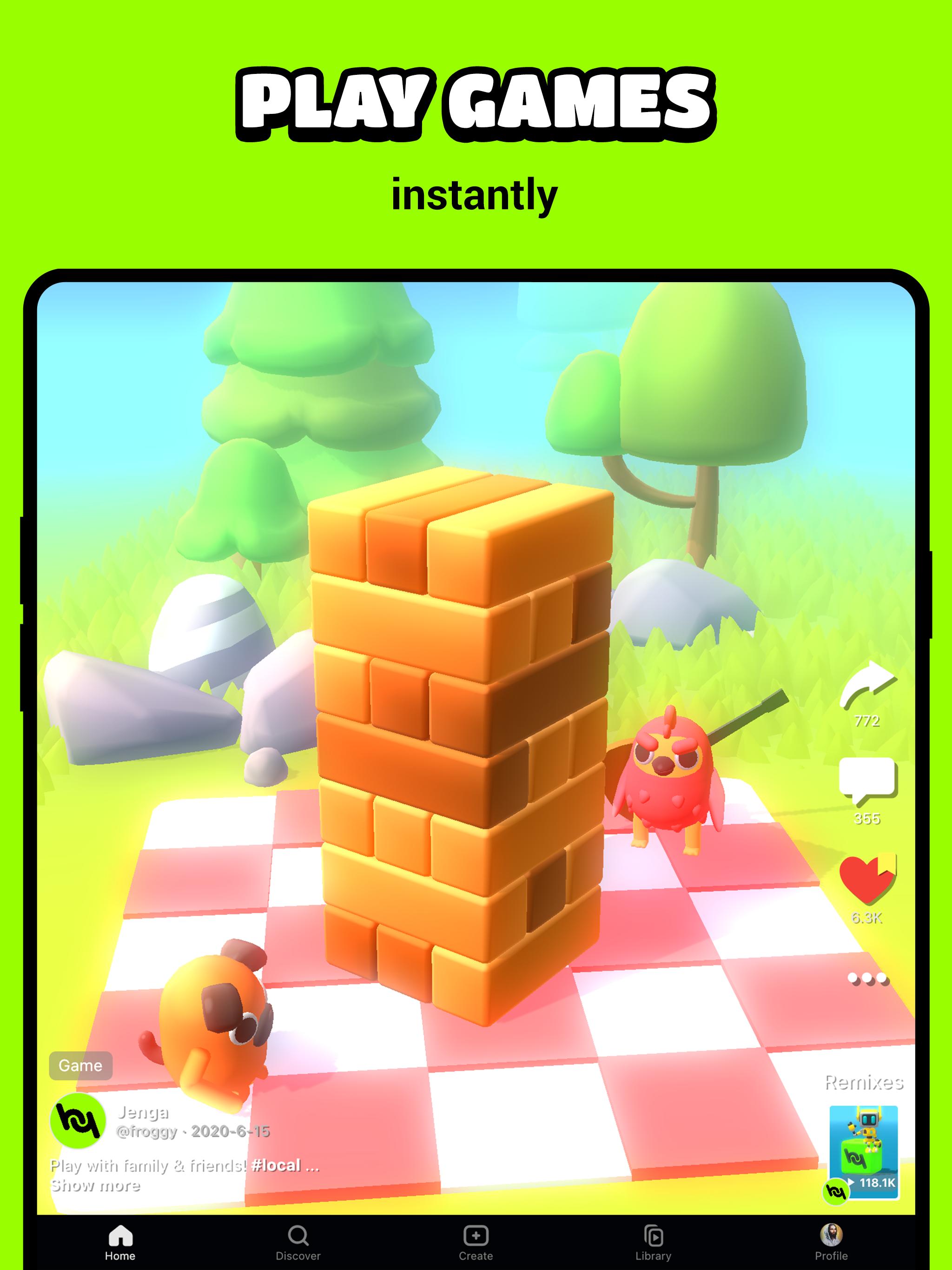 Make your 1st game today with an editor that is 100x faster and requires no coding. In addition, swipe to discover and play an endless number of great games, instantly and without waiting.