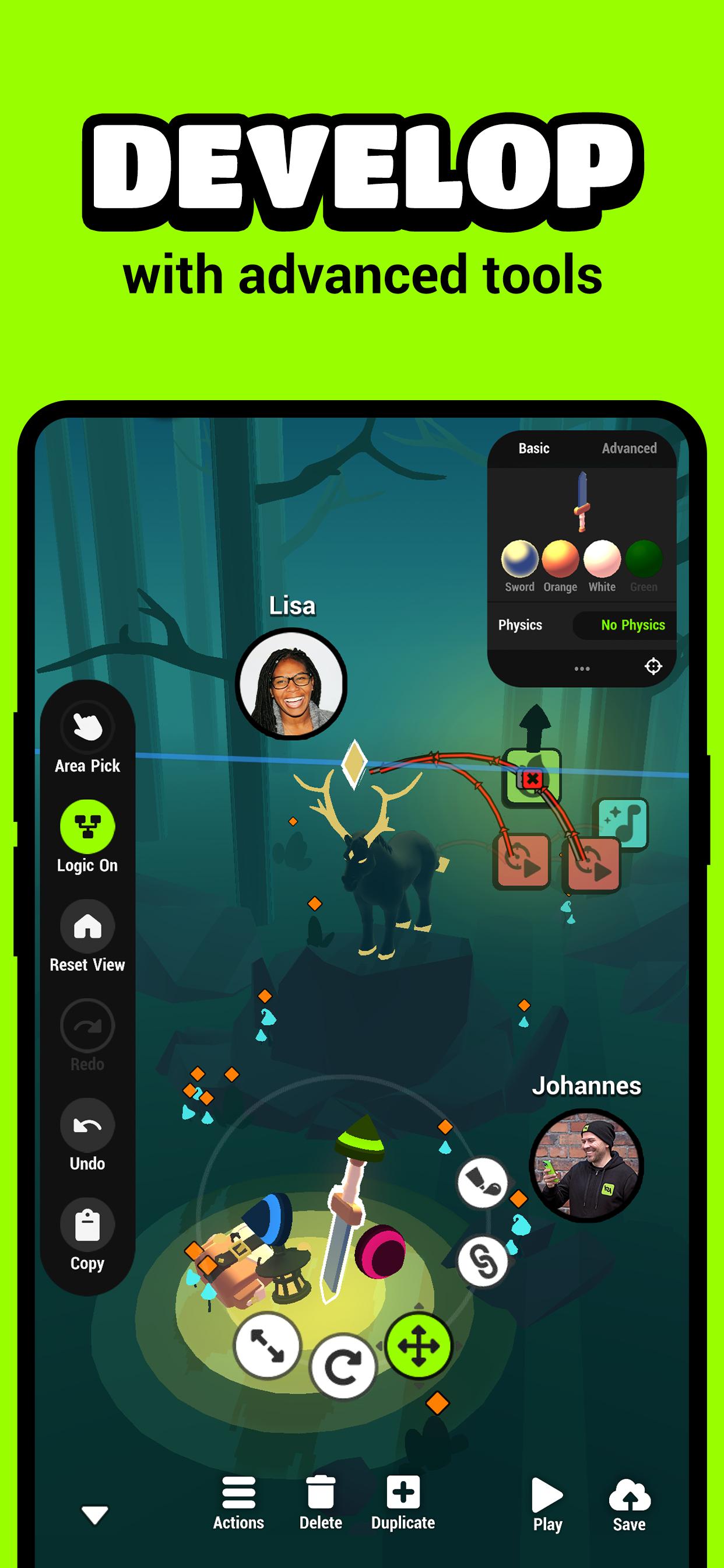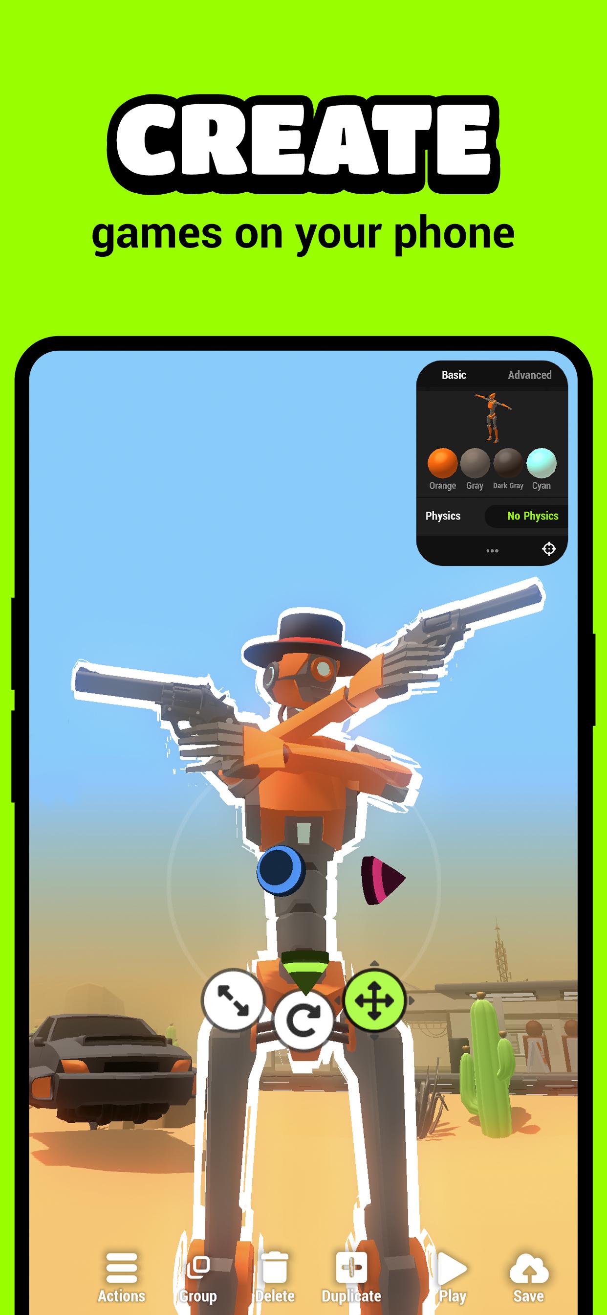 ● CREATE GAMES on a visual no-code editor on your phone or tablet