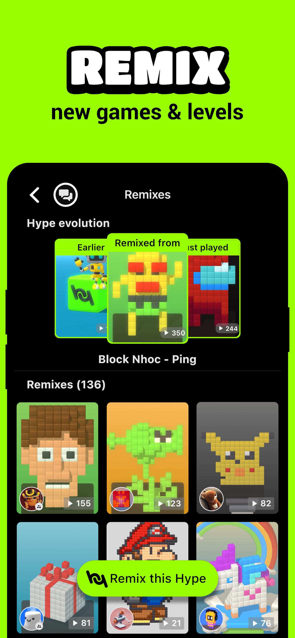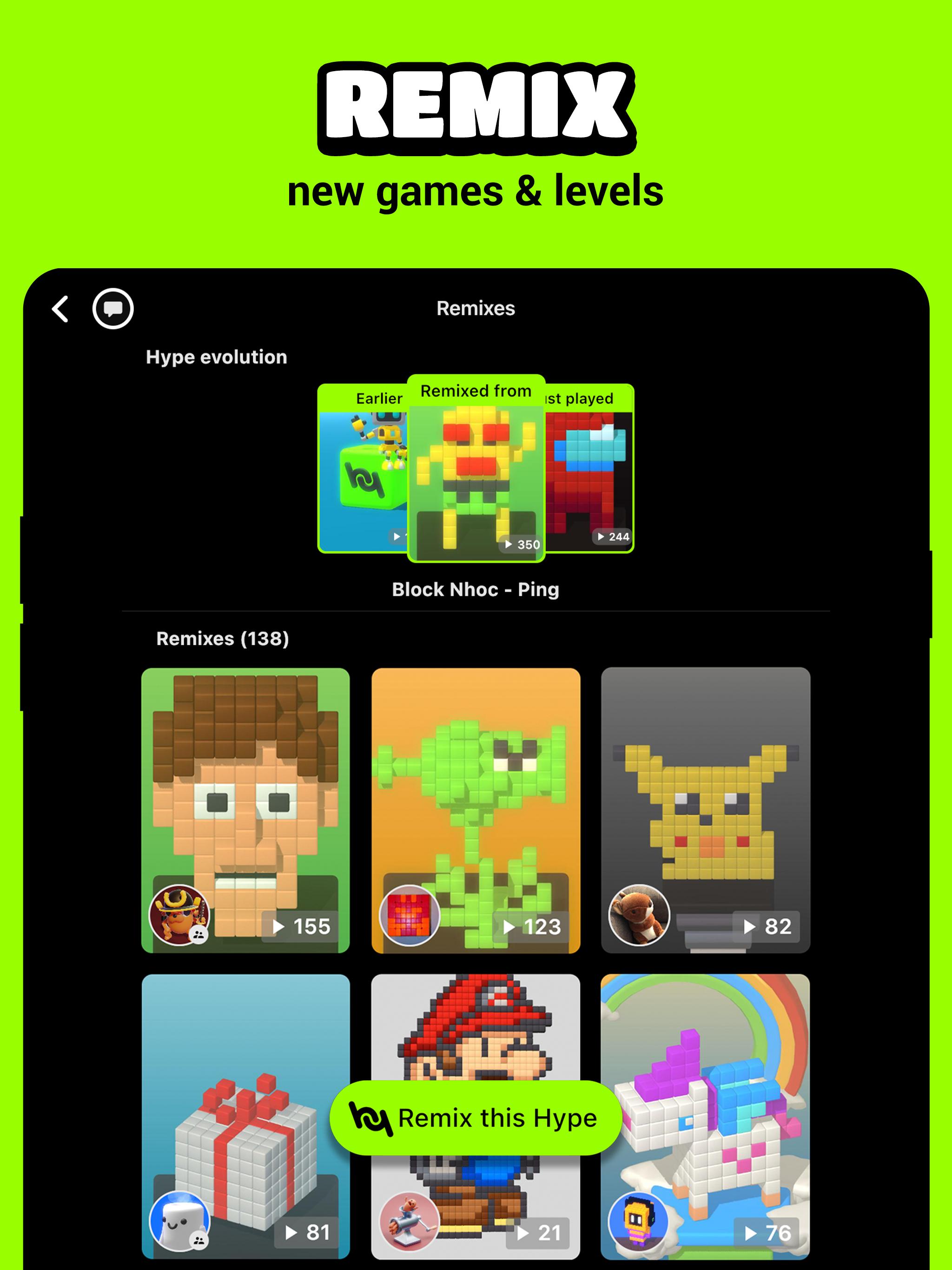HypeHype is a new and free revolutionary app to CREATE, REMIX and PLAY games on your phone.