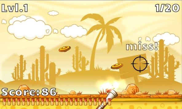The object of this game is to shoot down the flying discs by tap. Game stage is infinity. If you get more stages, game difficulty is increase. If the amount of discs shot down in a level is larger than 16, you may proceed to next level.