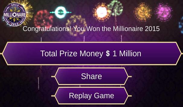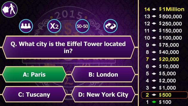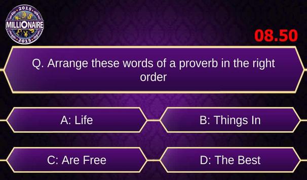 Millionaire 2015 is a GK trivia game based on the popular TV show. Can you rise up to the challenge and beat this simple quiz?