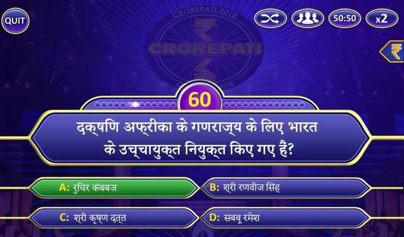 Crorepati 2018 adalah permainan seperti terkenal di dunia acara televisi KBC.