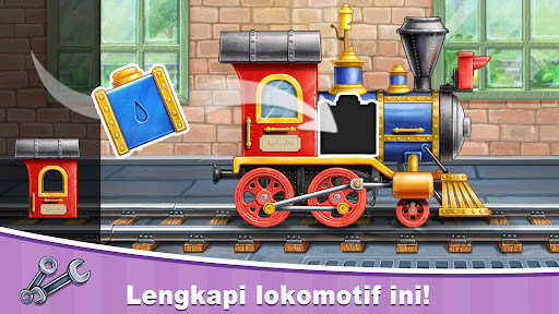Permainan anak-anak ini termasuk membangun rel kereta api dan mengantarnya ke kota untuk pekerjaan lebih lanjut. Anak-anak akan suka membangun lokomotif teka-teki, tempat cuci mobil, dan stasiun bahan bakar dengan arang dan air! Pasang beberapa gerbong ke kereta mainan dan kendaraan Anda! Selanjutnya, anak Anda akan membangun stasiun penumpang sungguhan, memuat barang dan peralatan ke dalam gerbong dan mengundang penumpang untuk memulai perjalanan mereka dengan kereta ajaib baru! Semua mekanik gim sangat menghibur dan mendidik dalam satu.