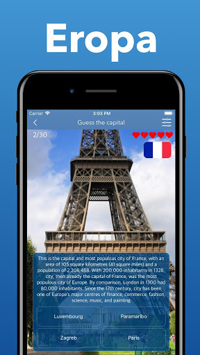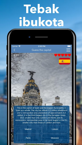 Ini adalah game edukasi yang bagus untuk siapa saja yang tertarik pada geografi. Tebak kota-kota di ibukota semua negara di dunia! Uji pengetahuan Anda!