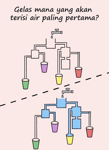 1. Temukan gelas mana yang akan terisi paling pertama;