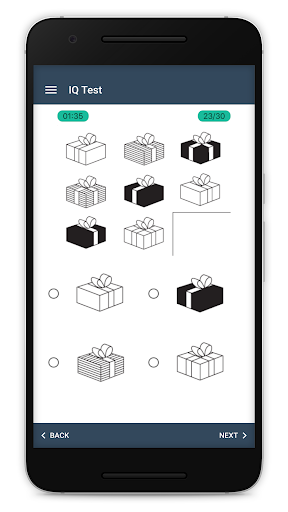 Hanya dalam beberapa menit, hitung IQ Anda dengan pertanyaan interaktif terbaik yang mengukur memori visual Anda, analisis pola, dan penalaran spasial. Ada 30 pertanyaan total dengan setiap pertanyaan memiliki 4 pilihan jawaban. Pertanyaan-pertanyaan dibuat dengan cara yang menyenangkan dan interaktif sehingga saat Anda mengukur IQ Anda, Anda dapat memiliki yang paling menyenangkan dan tidak bosan sama sekali!