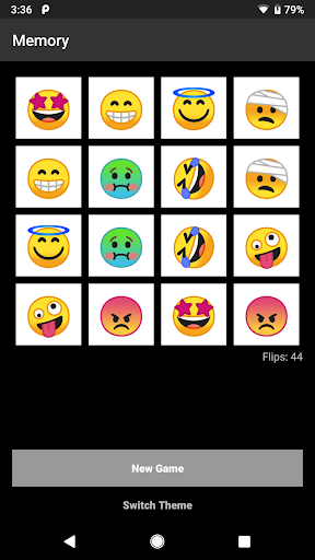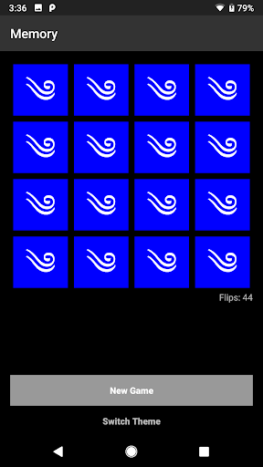 Game Play: Semua kartu mulai menghadap ke bawah dan dua kartu terbalik menghadap ke atas setiap belokan.Jika kedua kartu dicocokkan, mereka tetap menghadap ke atas, jika tidak, mereka terbalik kembali ke posisi muka.Tujuan permainan ini adalah untuk mencocokkan semua pasangan dalam jumlah yang paling tidak bergerak.