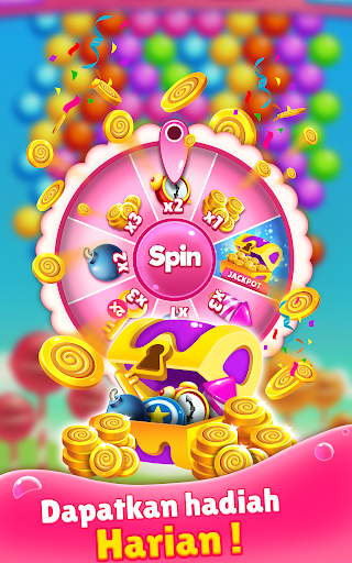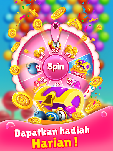 Juga, bermain lebih banyak dan dapatkan hadiah dengan banyak hadiah gratis dari roda berputar dan kotak misteri. Tidak ada akhir dari kejutan dengan Candy Bubble Games.