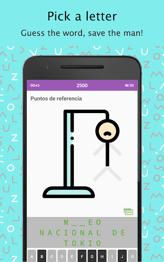 Tebak huruf dan temukan kata tersembunyi! Tapi, ada jumlah tebakan saja. Setiap tebakan yang salah membawa pria yang lebih dekat untuk digantung!