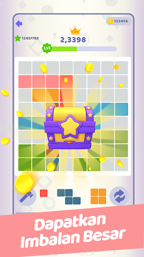 Tempatkan berbagai jenis balok dalam ruang terbatas. Saat Anda mengisi baris atau kolom, semua blok di baris atau kolom itu akan dihapus.