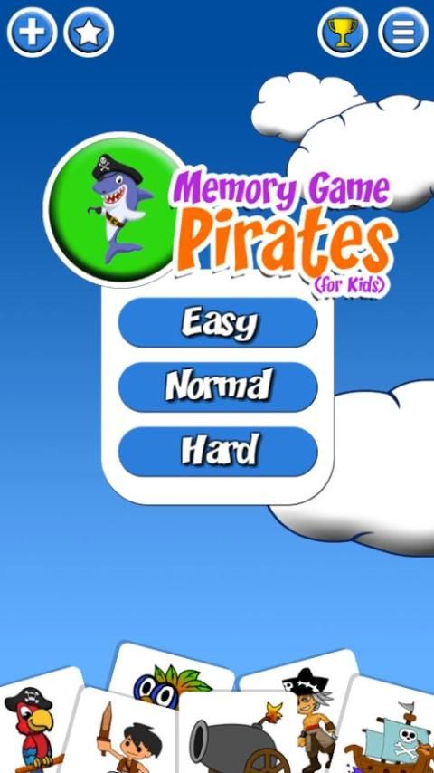 * Memory Game Pirates (untuk anak-anak), berisi gambar lucu dari bajak laut yang berbeda seperti monyet bajak laut, bajak laut dongeng, burung bajak laut, bajak laut anak dan gadis bajak laut, kapten bajak laut dan sebagainya.