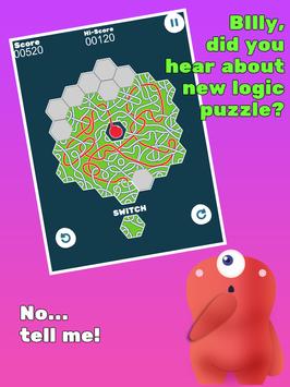 The goal of the game is to create the longest path possible with help of tangled lines, without running into either the centre hexagon or the outer edge of the game board.