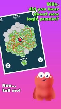 Once you have selected an orientation of the hexagon, a path is traced along that hexagon with tangled lines on it, and you are provided a new hexagon that you may rotate at the end of your current path.
