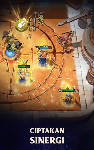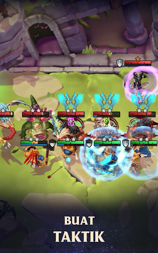 Seperti dalam pertempuran bersama, kamu harus menjadi orang terakhir yang bertahan sementara sihir yang kamu buat membuat lawan tersentak di tanah. Berevolusilah menjadi pahlawan auto chess!