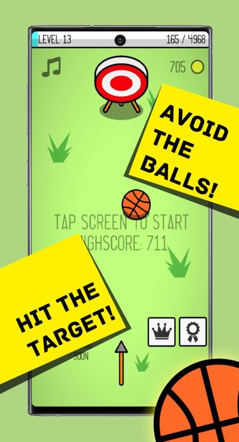 It is a sunny day. You are out with your javelin once again, practicing hitting targets and collecting coins. But suddenly bouncy balls bounce all over the training field. Don't worry! Even though you lose when you pop a bouncing ball, you get that sweet sweet bonus counter to increase when your javelin whiffs it very close! Now you've got another chance to increase your highscore and when you throw your javelin and get into another coin rush. Casual fun for the whole family using only one button!