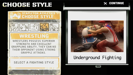 Gameplay diperluas dari game asli, yang terutama merupakan permainan gulat. Pejuang dapat memilih satu, dua, atau tiga dari lima gaya pertempuran. Gaya pertempuran adalah streetefighting, kickboxing