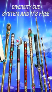- Various types of cues with playing modes: pool 8 ball, pool 9 balls, and billiards card.