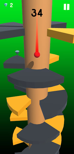 Tekan dan tahan pada Bola Helix untuk bergerak ke bawah menuju tumpukan dan terus menggerakkan bola tanpa menyentuh hambatan apa pun.